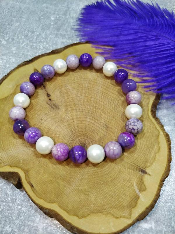 Браслет на резинке из жемчуга майорки и агата "вены дракона"