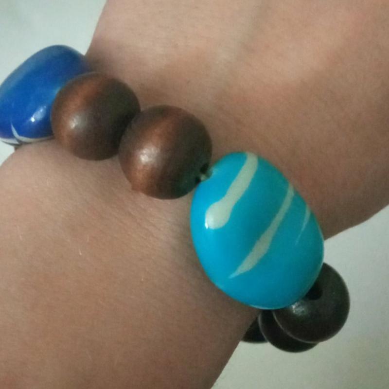 браслет оригинального стиля совместных материалом шарики сделаны из дерева а камешки похоже на пластик