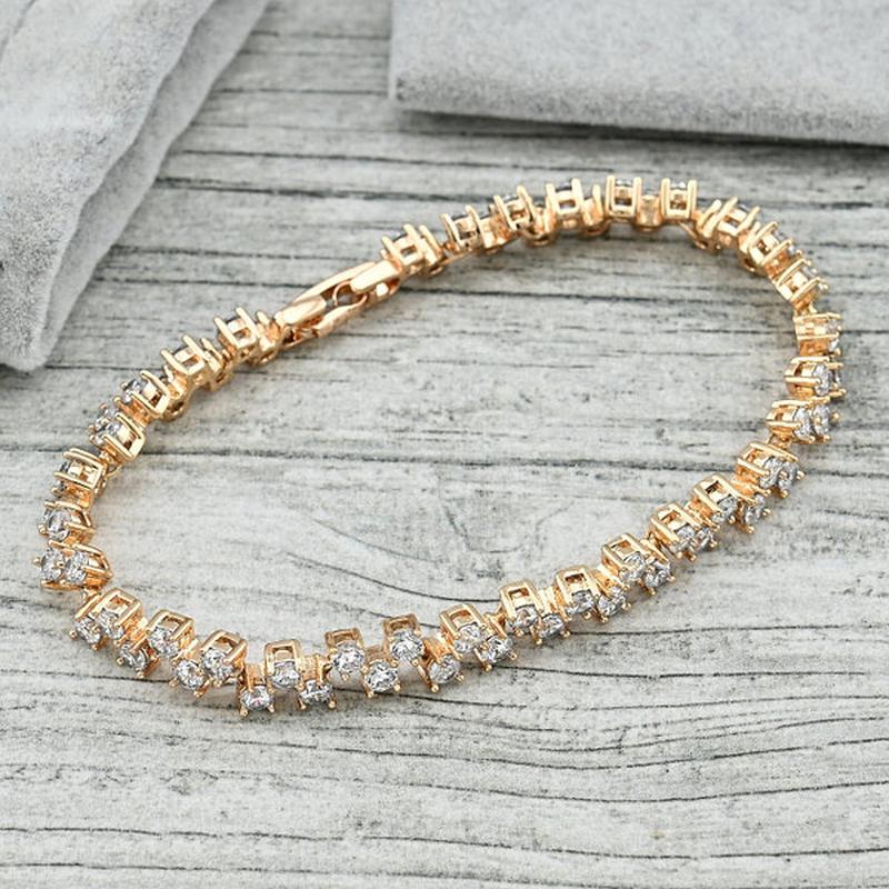 Браслет Шахові алмази 36291 ширина 6 мм білі фіаніти позолота 18К довжина 17,18.