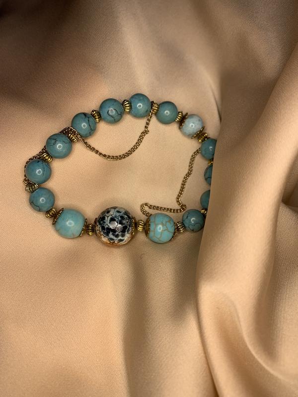Продам браслет из бирюзы Бирюза предохраняет своего владельца от несчастных случаев, опасностей, неудач, от негативной энергии окружающих. Она развивает интуицию, осмотрительность и дальновидность, но в то же время решительность, позволяет контролировать эмоции. Цена браслета - 300 грн