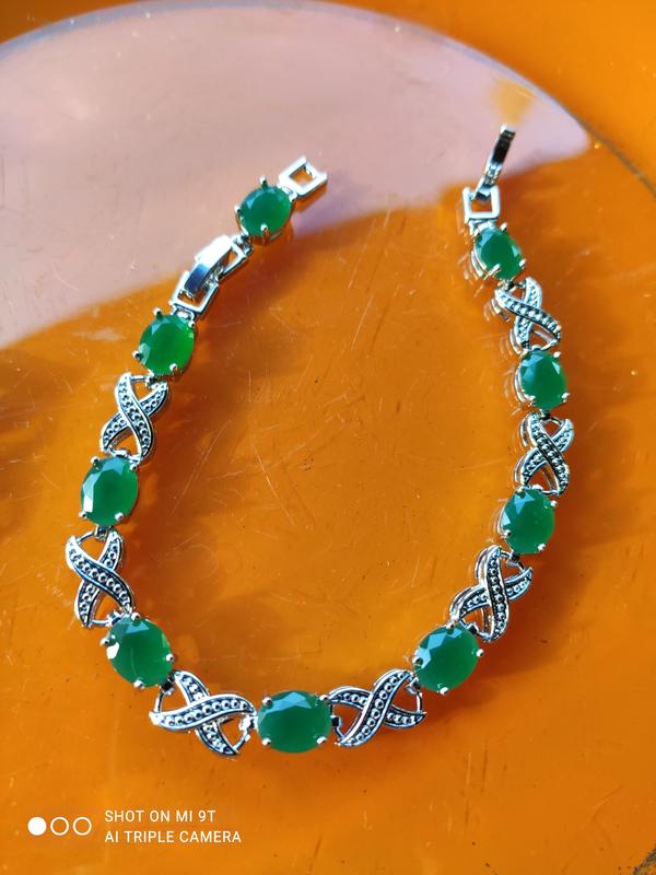 Нежный браслет с малайском нефритом и фианитами,длина 18,18.5 см,потайная надёжная застёжка.Не маркированый, Несколько видов.Есть серьги и различные кольца с нефритом.