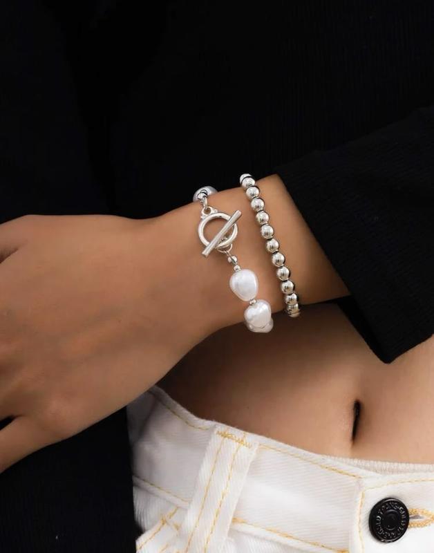 Стильный дуэт с барочным жемчугом▫️⠀ ⠀ ❗️в наличии ▰ Цвет металла: серебро