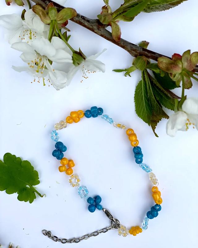 Браслет-оберіг з бісеру жовто-блакитний💛💙 Довжина - 17 см +5см (ланцюжок)