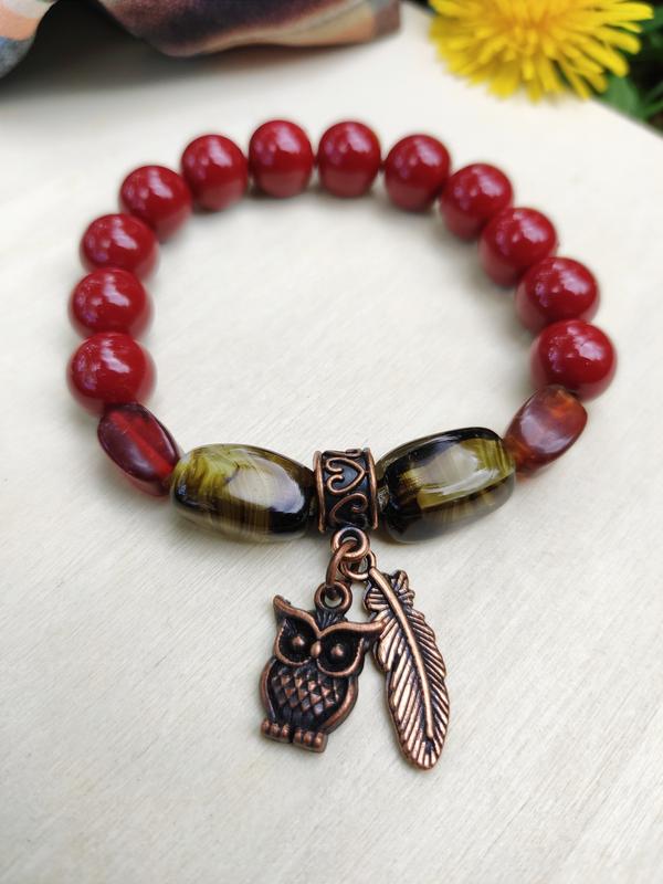 ✄Матеріали: 💎Скляні намистини, Натуральні намистини° 💎Металева підвіска° 💎Силіконова гумка° 👋На кисть 16-18 см