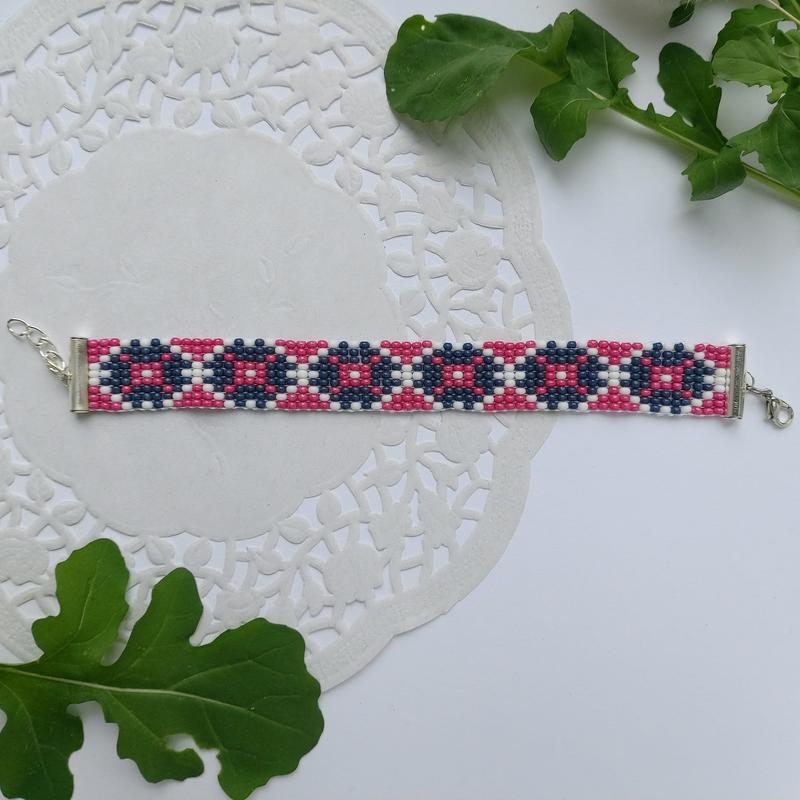 Браслет із чеського бісеру з етнічним мотивом Довжина 14 см (бісерна частина) плюс застібка і ланцюжок Ширина 1,5 см