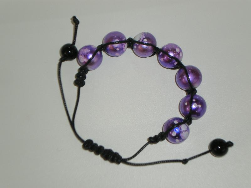 Шамбала из акриловых крупных бусин, в бело-сиреневых тонах. На концах бусины гематита.