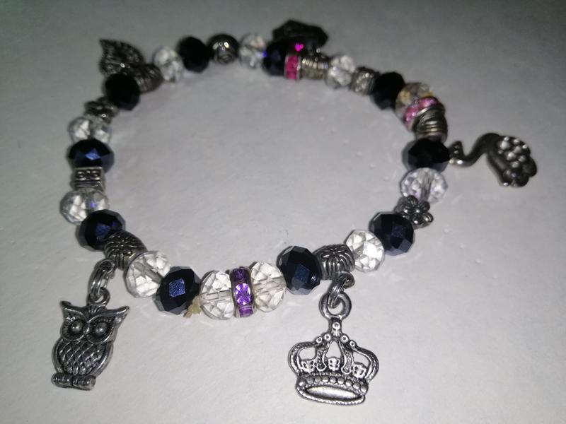 Браслет на руку. ( материал: резинка, бусины стеклянные, вставки - металл.) размер 17-18-19 )