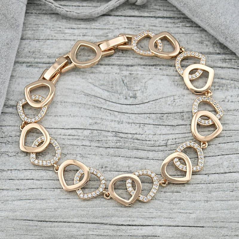 Браслет ширина 11 мм белые фианиты позолота 18К длина 17+2.