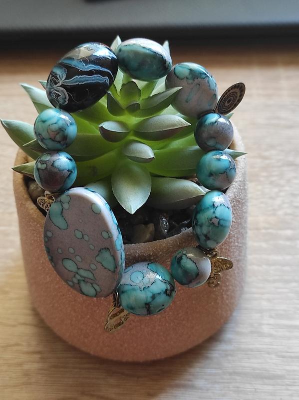 Массивный браслет ,бусины имитация натурального камня , отличное состояние