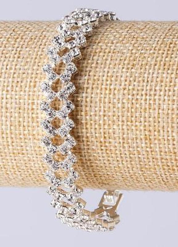 Браслет стразовый белые стразы двухрядный зиг-заг