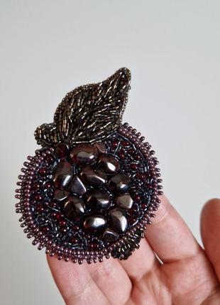 Продаю брошь в виде граната, размер 6Х7см Изделие выполнено из натуральных камней граната, японского бисера, натуральной кожи Выполнено в единственном экземпляре, без копий, сделано в Украине Брошь будет отправлена в подарочной упаковке, поэтому можете смело заказывать на презент