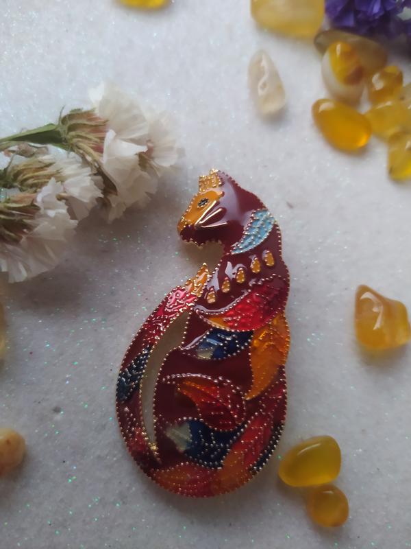 прекрасна брошка у формі кота з осіннього листя