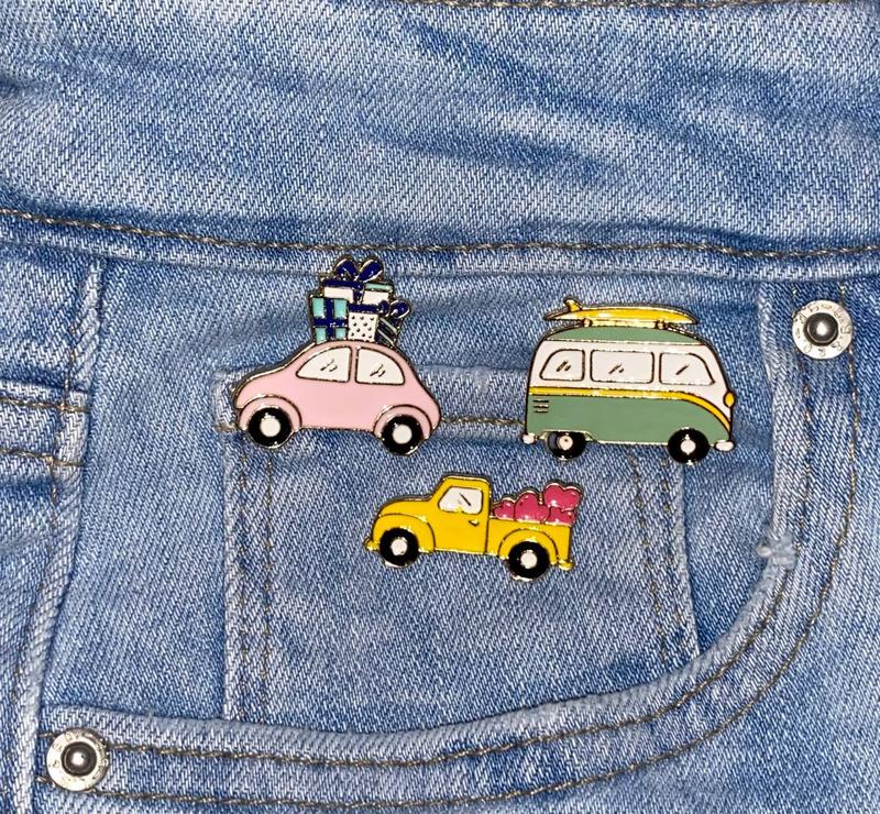 Набір значків / пінів металевих машинки з подарунками (3 шт