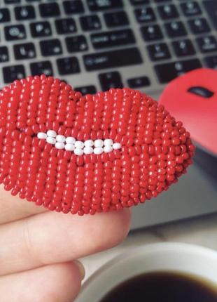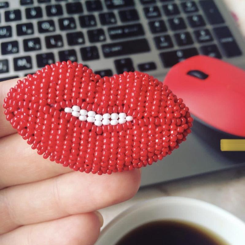 Брошка губы, вышита чешским бисером. Полностью ручная работа.