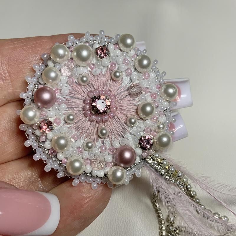 Брошь изготовлена с использованием бусин и страз Swarovski, чешского бисера, струйные палки, и пирьянок