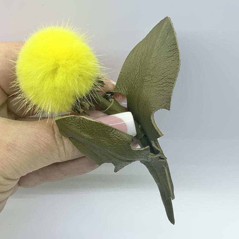 Брошь вытоллена из натурально кожи и ночного меха