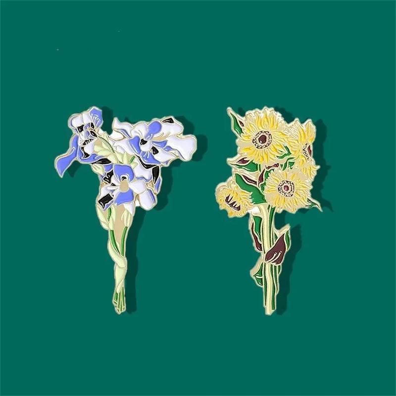 Набор значков / пинов металлических нежный ирис и яркие астры (2 шт)