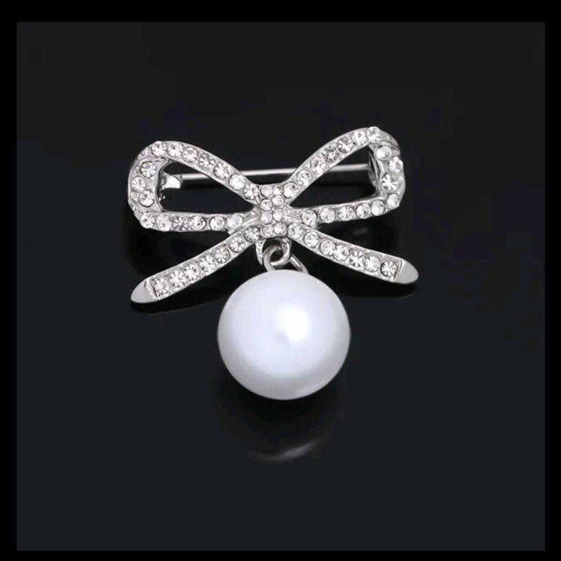 Мила брошка "Бантик з камінцями і перлинкою" Камінці дуже гарно сяють на сонечку Розмір 3 на 3 см
