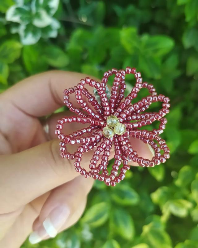 🏵️Брошка у вигляді квіточки червоного кольору - справжнє втілення грації та краси. Булавочка 🧷 брошки обплетена ніжним зеленим відтінком бісеру, що придає брошці ще більшої краси та вишуканості. Це елегантний аксесуар, що прикрасить будь-який Ваш наряд та підкреслить Вашу унікальність ❤️❤️❤️ 📸 Фото без обробки 📏Розмір квіточки 4*4см