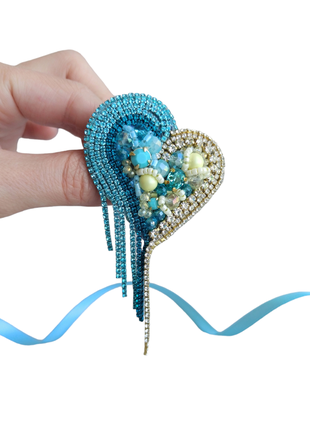 Брошь сердце желто голубого цвета, подарок подруге