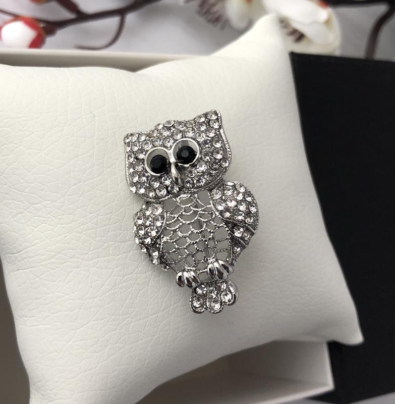 Брошка сова, совушка, совенок, символ мудрості, брошь сова, под серебро, на подарок
