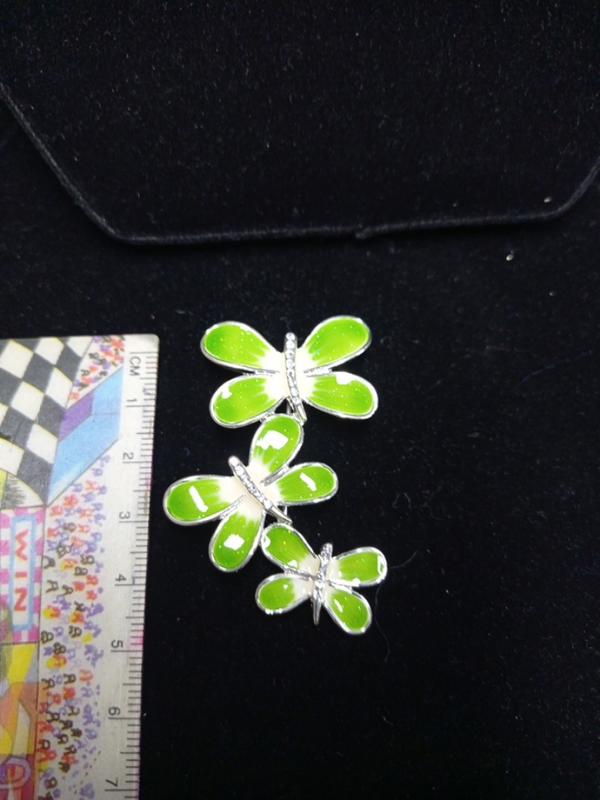 брошь бабочки...на белом металле. украшена салатной эмалью..очень натурально смотрится..легкая..гарный подарок