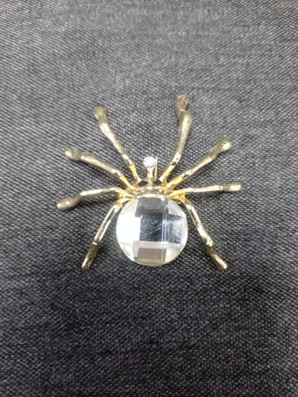 брошь паук..крупный камень..желтый металл
