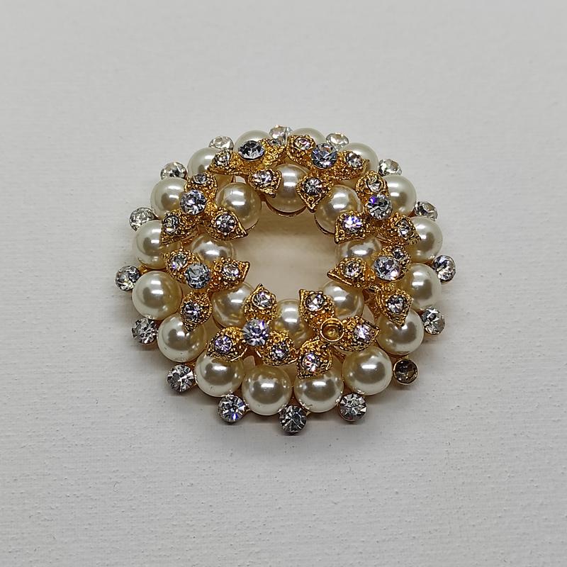 Диаметр 5см Нет двух камушков и сзади сломанная застежка. Но есть круглая штука за которую можно закрепить или повесить в качестве подвеса.
