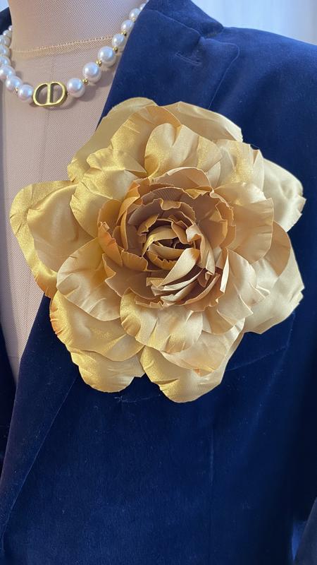 Брошь роза, искусственный шелк, ручная работа, в диаметре 16см.