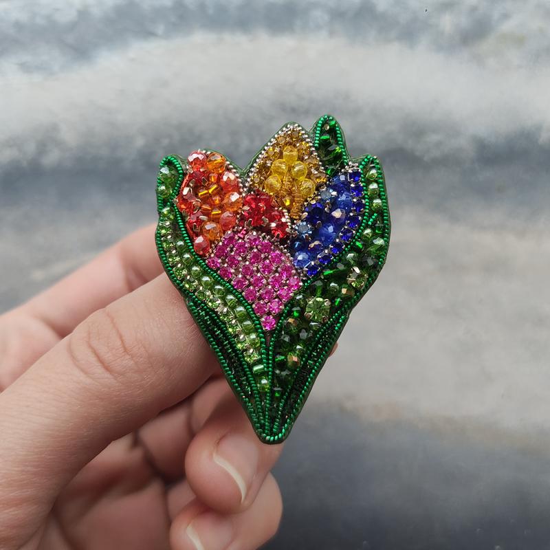 Брошь вышита чешским бисером, стеклянными бусинами и стразами, изнанка- экокожа, застёжка с поворотным механизмом. Размер 5х4 см Возможно изготовление брошей на заказ, детали уточняйте.