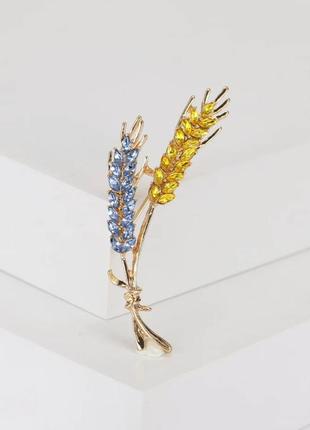 Брошка «Колоски» Голубо-желтая На голку