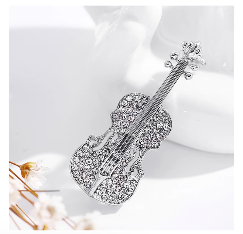 Мила стильна блискуча брошка зі стразами скрипка музика