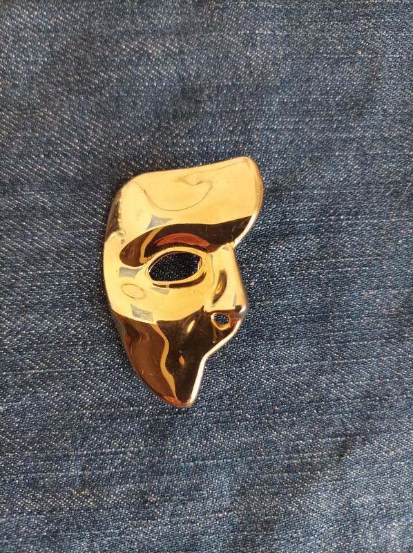 Брошка "маска", глянцевая поверхность золотого тона, без маркировки.
