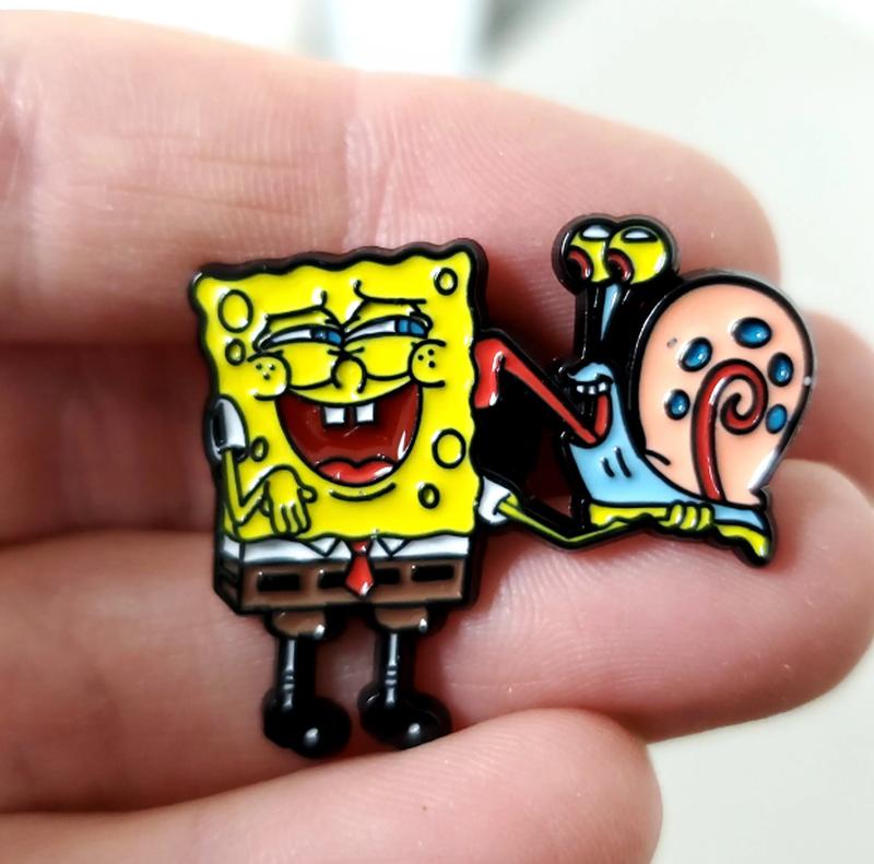 Губка боб спанч боб брошь брошка значок пин металл sponge bob улитка гэри