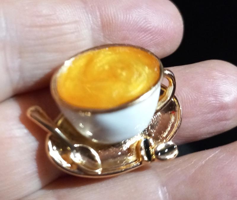 Брошь брошка значок металл чашка кофе зерна обьемная 3d эмаль очень красивая белая