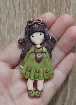 Брошка дівчинка зліплена з полімерної глини за мотивами ілюстрації Сьюзен Вулкотт. Брошка дівчинка стане відмінним подарунком, ексклюзивним прикрасою. Додаткові характеристики: Стать: Жіночий Матеріал: Полімерна глина