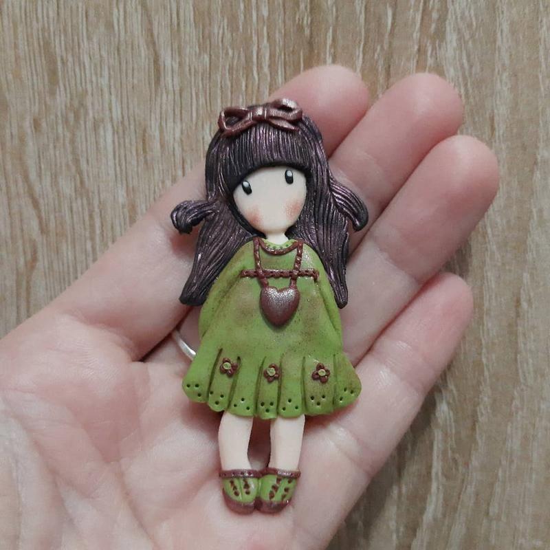 Брошь девочка слеплена из полимерной глины по мотивам иллюстрации Сьюзен Вулкотт. Брошь девочка станет отличным подарком, эксклюзивным украшением. Дополнительные характеристики: Пол: Женский Материал : Полимерная глина