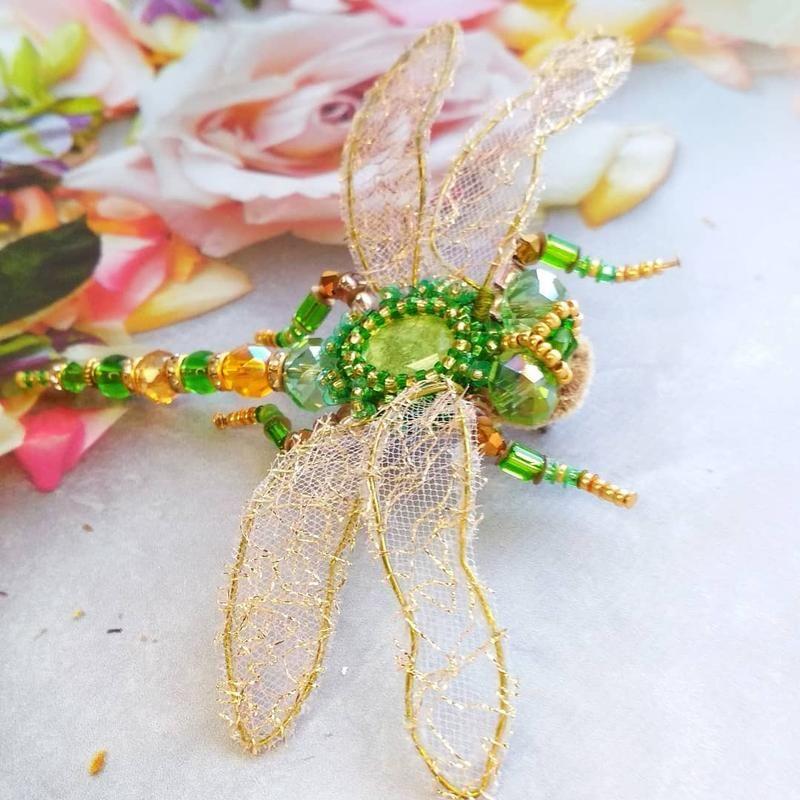 Легкая,воздушная брошь Стрекоза из чешских бусин и бисера. Товар под заказ