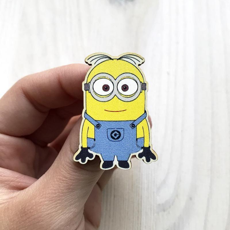 Представьте, сколько радости Вы сможете подарить своим близким, просто подарив такой маленький милый значок! Значок «Миньон» может служить в качестве сувенира или же броши, прицепите его на свитер, сумку, рюкзак, шарф или же шапку и поднимите настроение себе и всем окружающим! А если вдруг Вы не нашли то, что искали, просто свяжитесь с нами и мы поможем воплотить в жизнь Ваши задумки. Дополнительные характеристики: Тематика: Мультфильмы / Фильмы Материал : Дерево