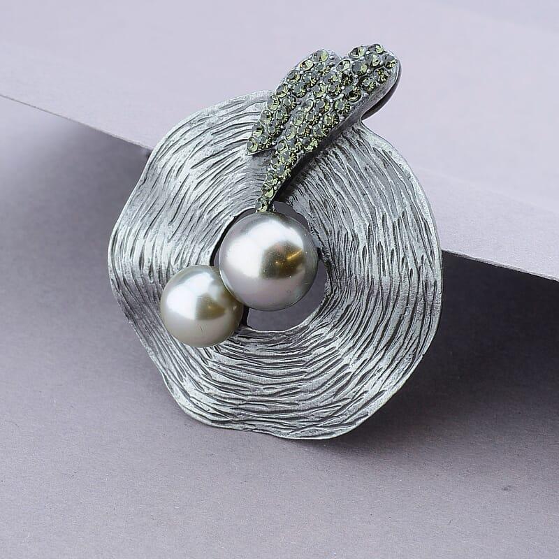 Артикул: 100379 Размер: 50х40 мм. Тип замочка: Булавка Материал: Бижутерный сплав Покрытие: гиппоалерген(с) Камень: Майорка(нат.) Камень2: Сrystal Цвет: Серый Цвет2: Зеленый Цвет3: Серебряный Вес: 17,11 г.