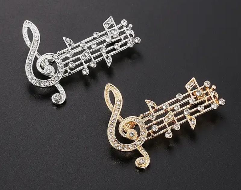 Брошь нотное состояние золотистого и серебристого цветов