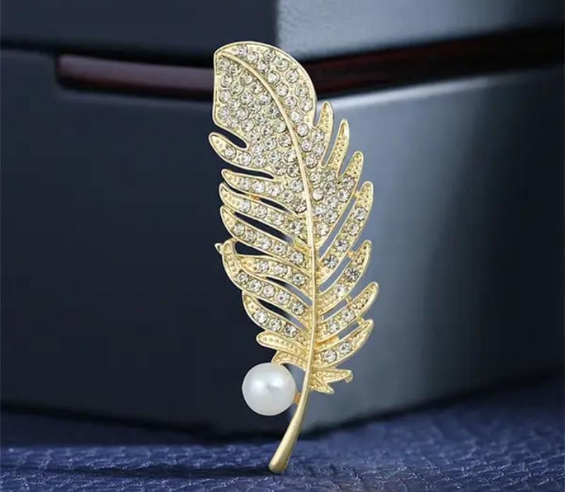 Брошь в виде перьев серебристого и золотистого цветов
