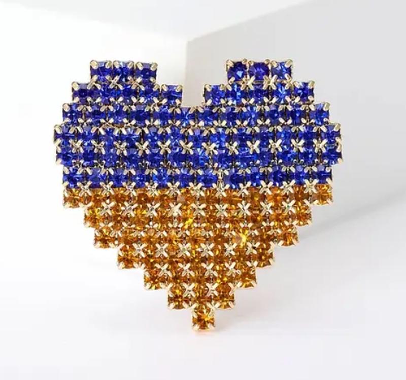 Брошь патриотическое сердце с камушками