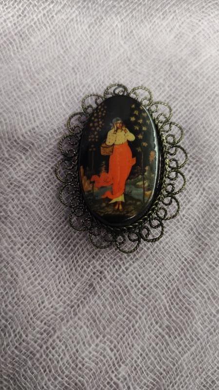 Брошь - подвес из мельхиора, руйный роспись. Размвр 5 х 4 см в хорошем состоянии