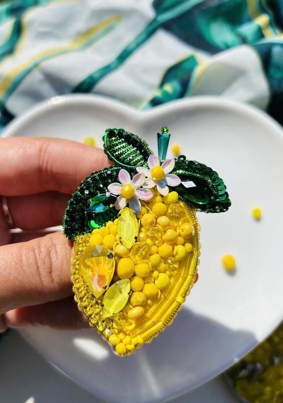 Брошь из бисера лимон