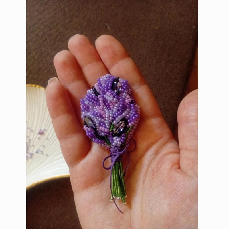 Милая брош Лаванда сделана из бусин страз и бисера.