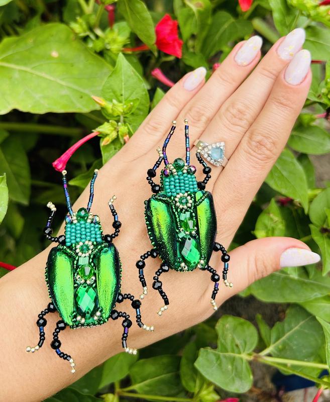 Фантастический Жук авторская работа Блестящий, в живую действительно невероятная брошь В наличии Изготовлено из премия материалов:ческий бисер, хрусталь, стразы, крылышки жука, экокожа Подарочная упаковка