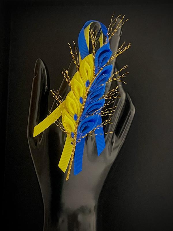 Брошь с украинской символикой 7 см., длина с лентами 13 см.