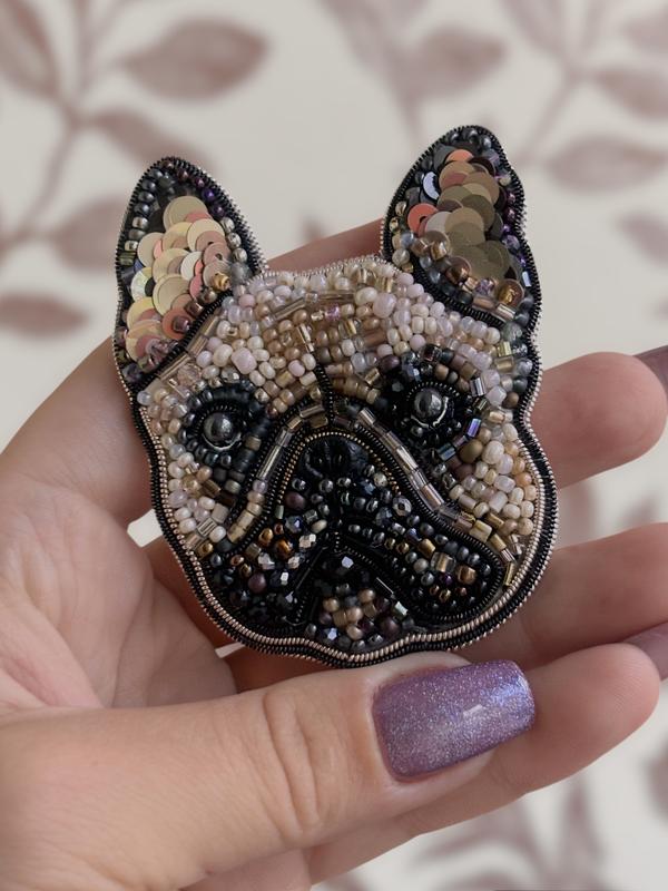 Брошь портрет любимца собака или кот из бисера мопс бульдог