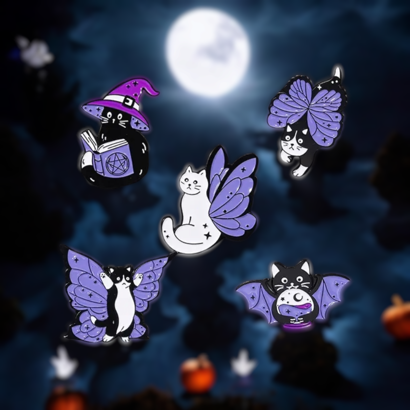 Набор пинов, значков, брошек " Хэллоуин и коты" 5 шт